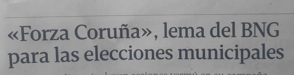 La obcecación con el artículo responde a un error de traducción, seguido de una lógica de confrontación. Hay que dejar de perder tiempo y recursos en algo fácil de arreglar. La Xunta, gobernada por un partido que suprimió el artículo en el cartel da su sede local en Sánchez Bregua -allí pone “Populares de Coruña”- debe ser fácil de convencer y la oposición en el Ayuntamiento tampoco sería problema. El gobierno local normalmente sólo emplea el A cuando escribe en castellano, en lengua gallega tiende a contraerlo con alguna preposición. Y prescinde de él contínuamente: Coruña Infinita, Bici Coruña, Coruña 10, Coruña Marítima…